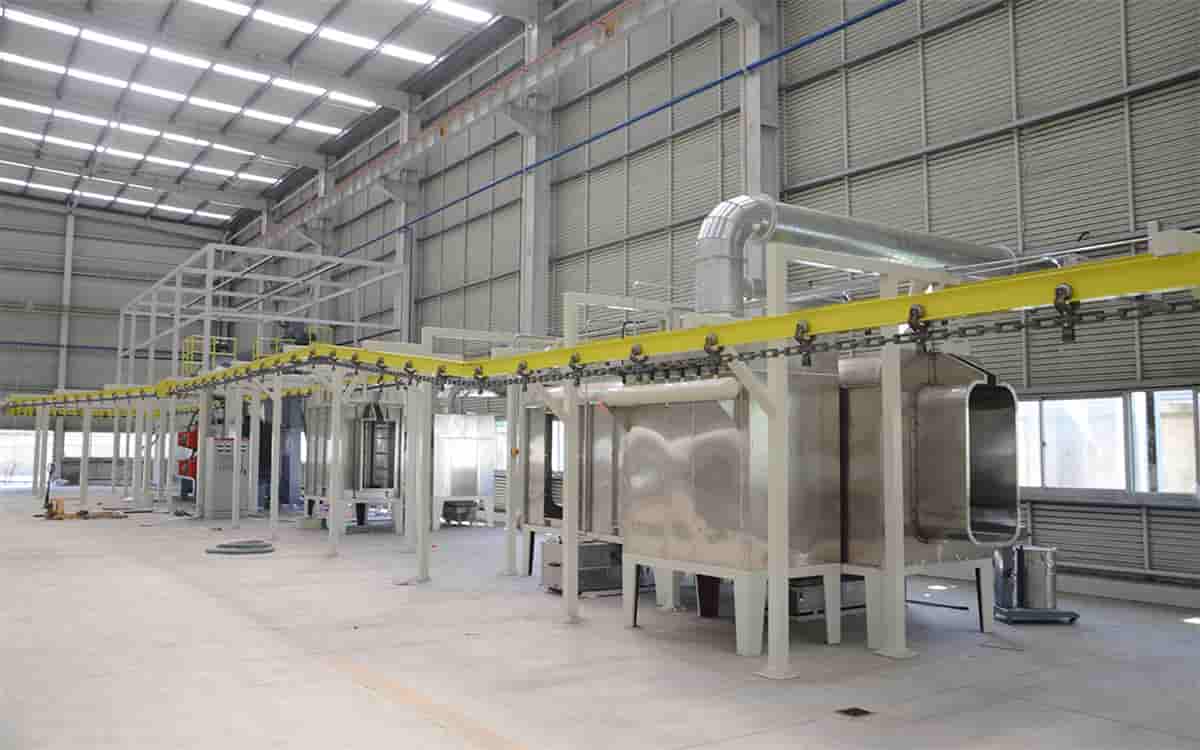 涂装流水线的组成部分主要包括:前处理设备、喷粉系统、喷漆设备、粉末回收设备、加热烘干固化烘道、热源系统、电控系统、悬挂输送链等。