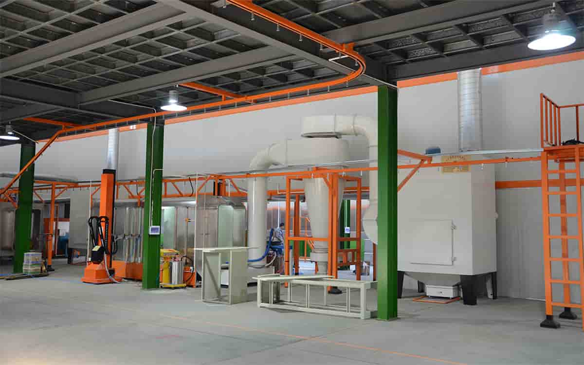 涂装流水线的组成部分主要包括:前处理设备、喷粉系统、喷漆设备、粉末回收设备、加热烘干固化烘道、热源系统、电控系统、悬挂输送链等。