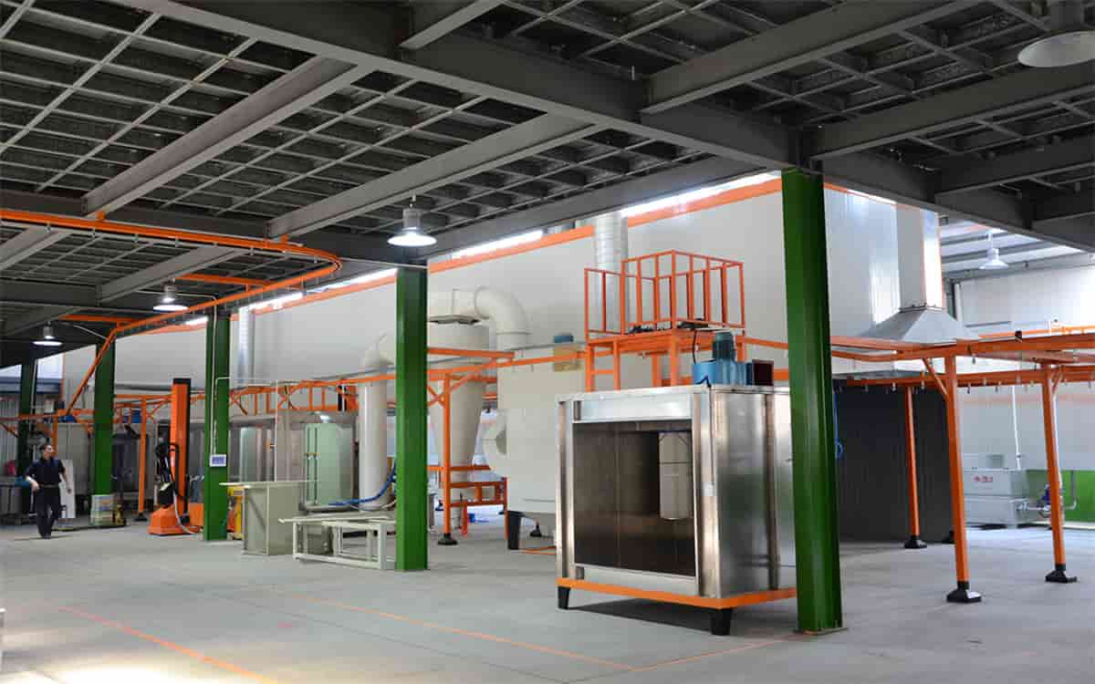 涂装流水线的组成部分主要包括:前处理设备、喷粉系统、喷漆设备、粉末回收设备、加热烘干固化烘道、热源系统、电控系统、悬挂输送链等。
